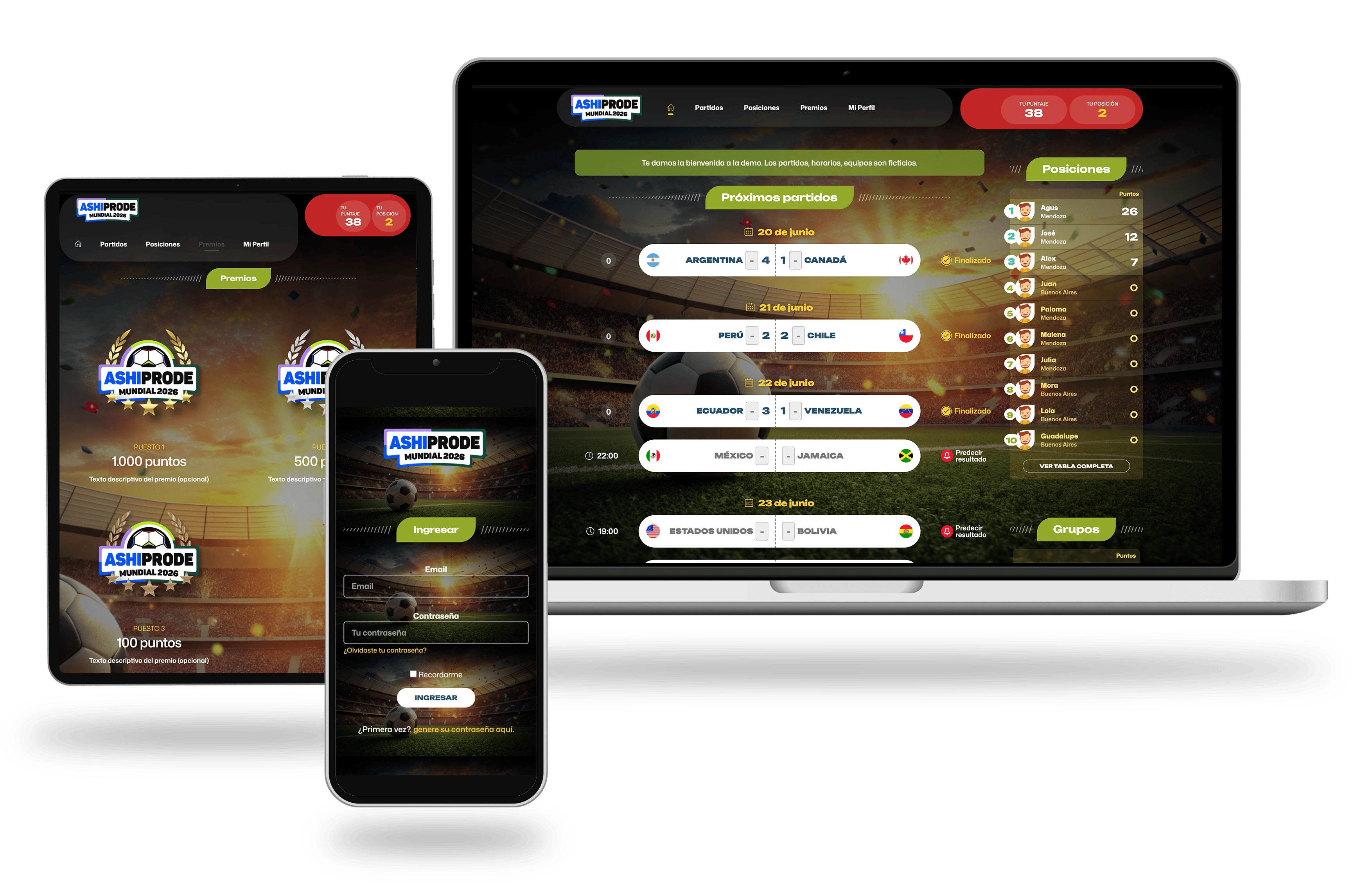 Contarás con la posibilidad de personalizar tu Prode incluyendo logo, banners, fondo de página y una dirección URL (ej: miempresa.ashiprode.com).